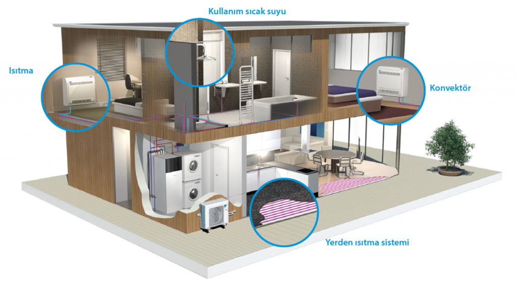 Duvar Tipi İç Ünite + Boyler (Sıcak su) tankı ile uygulama