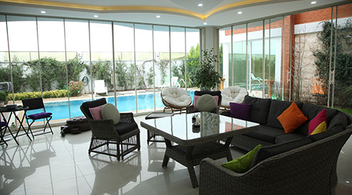 Hem sağa hem de sola toplanabilme özelliği ile yapıldığı alanı açık hale dönüştürülerek kesintisiz manzara görünümü sunar. Ürün hem içeriden hem de dışarıdan kilitlenebilme özelliği ile dışarıdan gelebilecek müdahalelere karşı güvenli bir ortam yaratır.