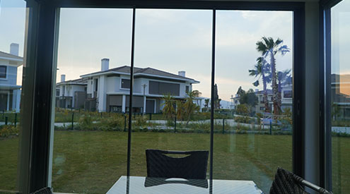 Camoda Vista Unico sürme cam balkon sisteminde kullanılan temperli çift cam uygulaması sayesinde ses yalıtımı ve güvenlik sağlanır.